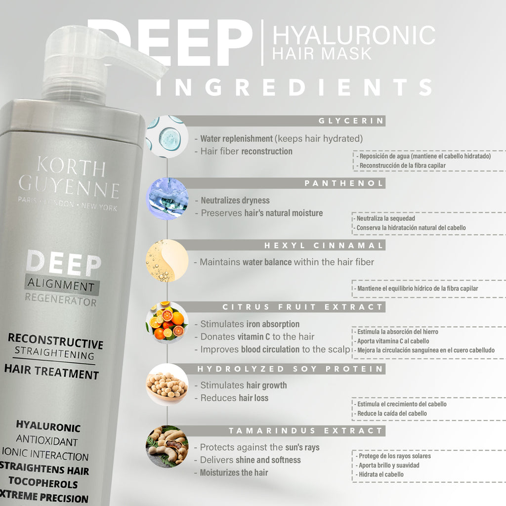 The Korth Guyenne Deep Hair Treatment is an innovative smoothing system that not only reduces volume but also provides deep hydration to your hair. Its unique formula is enriched with nanotechnological and biomimetic amino acids, working together to deeply penetrate the hair fiber, resulting in restoration, nourishment, and intense shine.